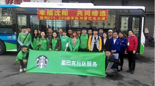 圖為: 211、222路車隊黨支部與星巴克開展“幸福沈陽,共同締造”主題共建活動。