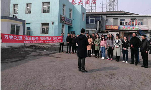 圖為:218路車隊黨支部與沈陽農業大學水利學院在218路終點站大東門廣場開展宣傳《萬物之源 滴滴珍貴 節約用水 你我同行》為主題的倡議儀式,農大水利學院的學生在大東門廣場與車隊職工共同宣傳節約用水,人人做起,從點滴開始。通過宣傳,讓大家了解節約用水的重要意義。