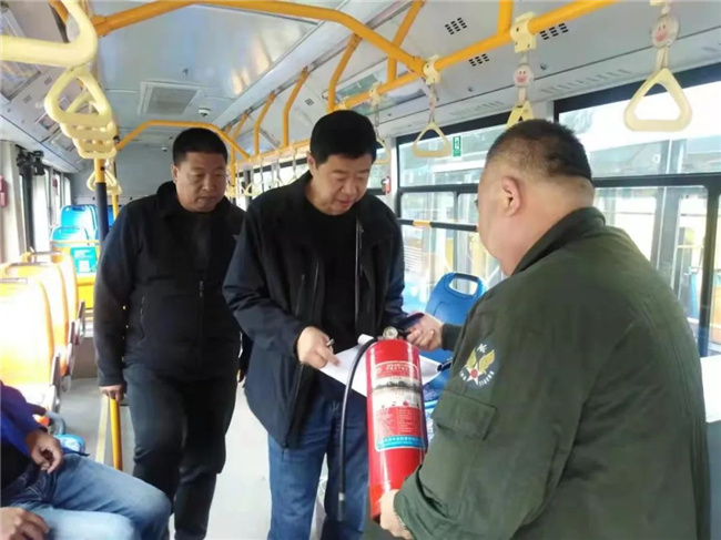 在檢查中,王兆民處長重點查看了車隊的消防安全責任制建立和落實情況,并對辦公區、場站、車輛電器設備、消防設施是否完整好用等重點部位進行了全面檢查。
