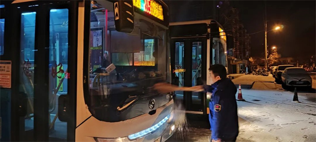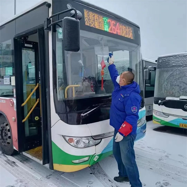 各車隊管理人員及駕駛員提前到崗,對車輛、場區積雪進行清掃,嚴格做好車輛發車前的各項準備工作。同時,車隊管理人員提醒駕駛員,車廂暖風系統全部開啟,為廣大市民提供安全、舒適、溫暖的公交服務。