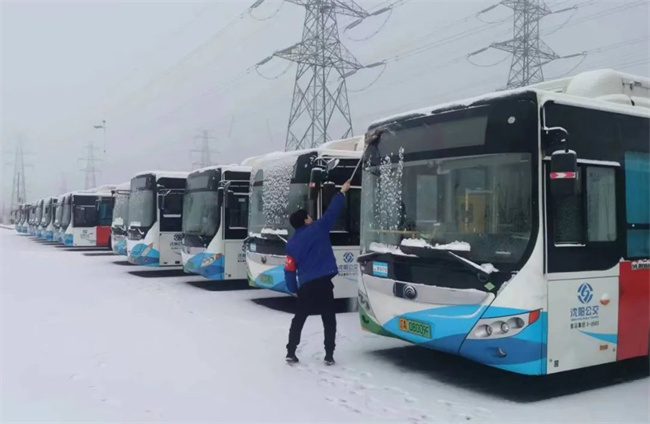 車隊管理人員、駕駛員提前到崗,清掃積雪,清潔車輛,保證公交車輛首班車準點發出。