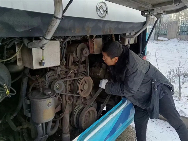 天還沒亮,各車隊管理人員、技術人員和駕駛員就抵達崗位,清掃車輛及場區路面積雪,排查車輛隱患,確保安全發車。車隊管理人員提前抵達線路易結冰路段,對道路結冰與濕滑情況進行摸排,并叮囑每一位發車的駕駛員注意行車安全。