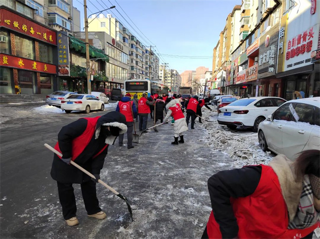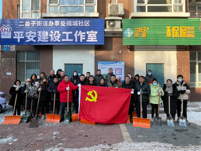 機關黨支部攜手二臺子街道福城社區黨總支共同鏟除社區道路及背街小巷的積雪。大家不畏嚴寒、默契協助,齊心協力,清理出一條條安全暢通的道路,為寒冷的冬日增添了溫暖。