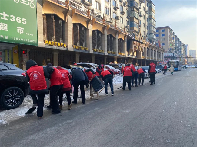 在志愿者們的帶動下,許多普通居民和沿街商戶也陸續加入到清除冰雪的隊伍之中,大家齊心協力清掃出一條條“暖心平安路”,確保了市民的安全出行,用“共掃全城雪”的實際行動,美化家園、扮靚城市、溫暖人心。