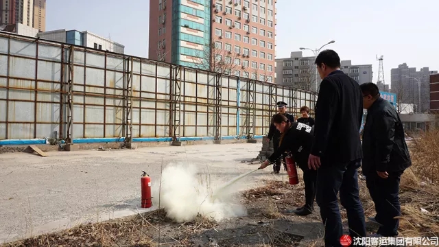 最后,大家一同來到室外,集團公司保衛部副部長姚天飛、安全部副部長張國富親自給大家示范如何正確使用滅火器。